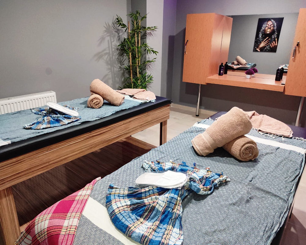 Hizmet alanlarımız içinde başta masaj ve türleri olmak üzere, bir uzak doğu kültürü olan spa, Sauna ( buhar banyosu), Türk Hamamı, ve yüz bakımı maskesi ve masajı gibi hizmetler sunmaktayız.